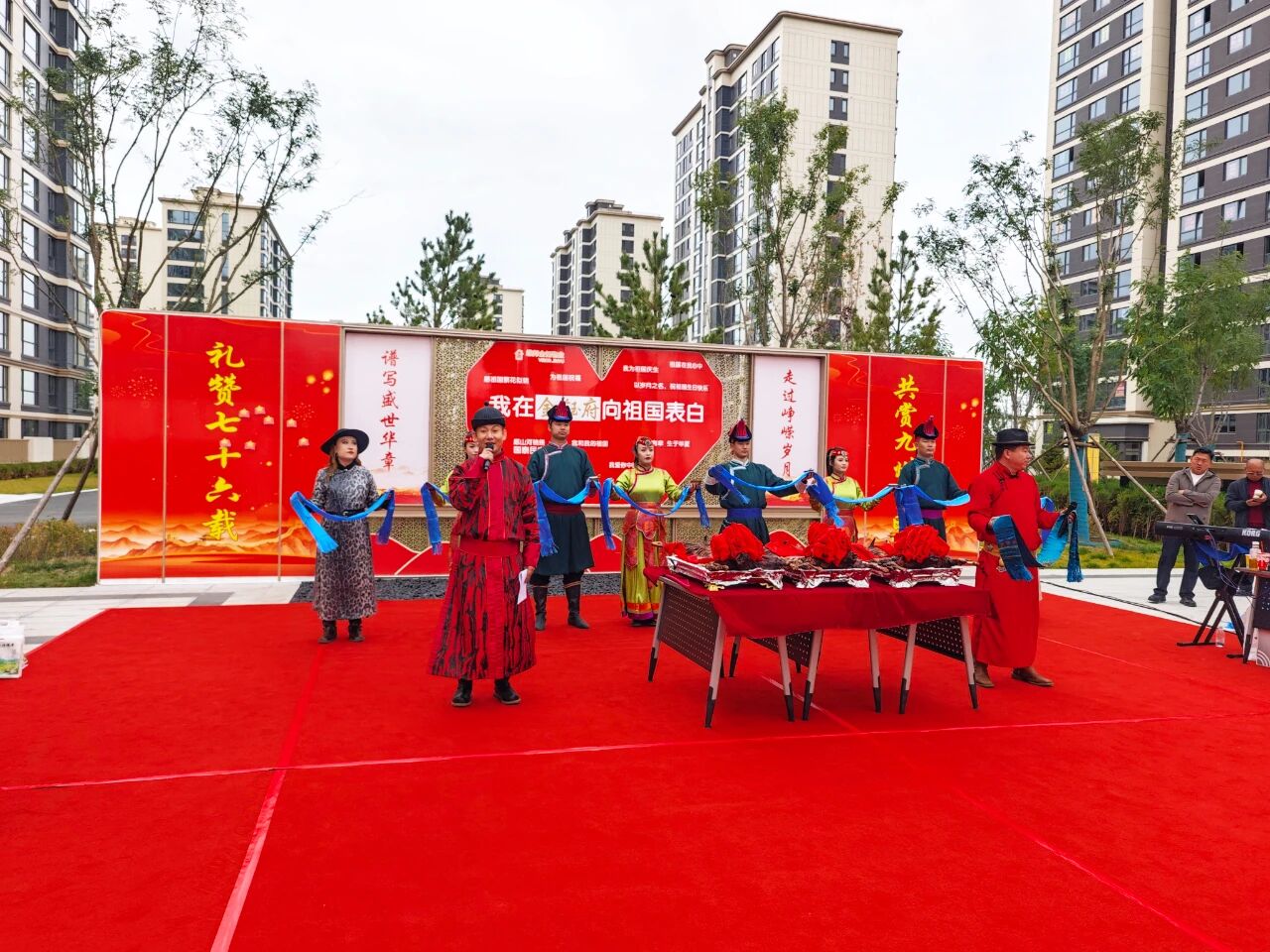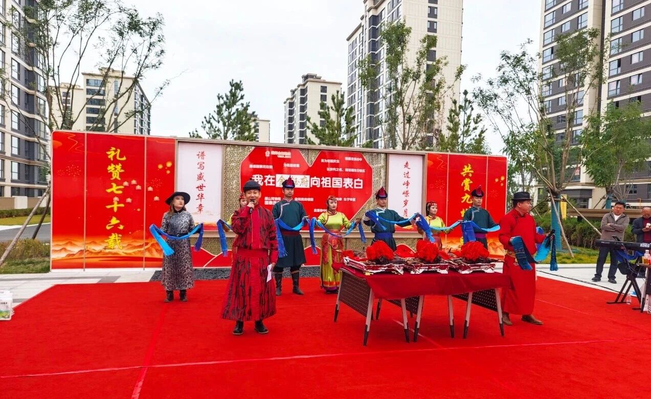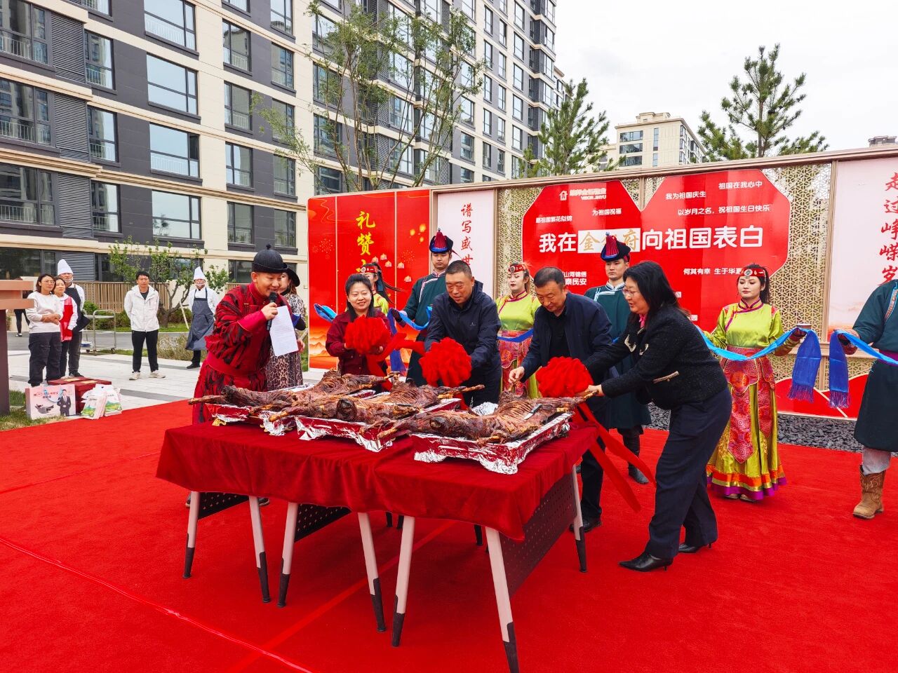 随后,活动进入热闹的烤全羊家宴环节。现场集体为祖国庆生,切蛋糕、奏国歌与生日歌,仪式感满满;金黄酥脆的烤全羊散发着诱人香气,业主代表简短分享参与活动的喜悦后,黄花沟演艺精彩上演,动听的歌声与优美的舞蹈为家宴增色。业主们围坐共享美食,畅谈生活琐事与购房规划,温馨氛围中,购房福利与“好房子” 理念成为现场热议的双重焦点话题。