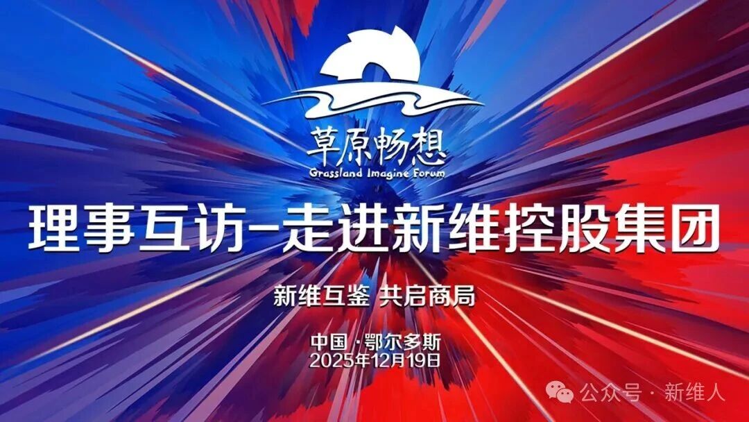2025 年 12 月 19 日,草原畅想理事互访活动第二站走进内蒙古新维投资控股集团。本次活动汇聚了理事会多位核心成员,包括伊泰集团、华实食品、汉森酒业等企业的董事长、负责人及高管代表;新维控股集团董事长孙平、副总裁李钢、新维文旅集团总裁孙雨、集团党委书记李延光全程陪同,与各位理事共同体验维邦地产・未来生活体验馆、探访维邦・金钰府,并通过座谈会共话趋势、共启商局。
