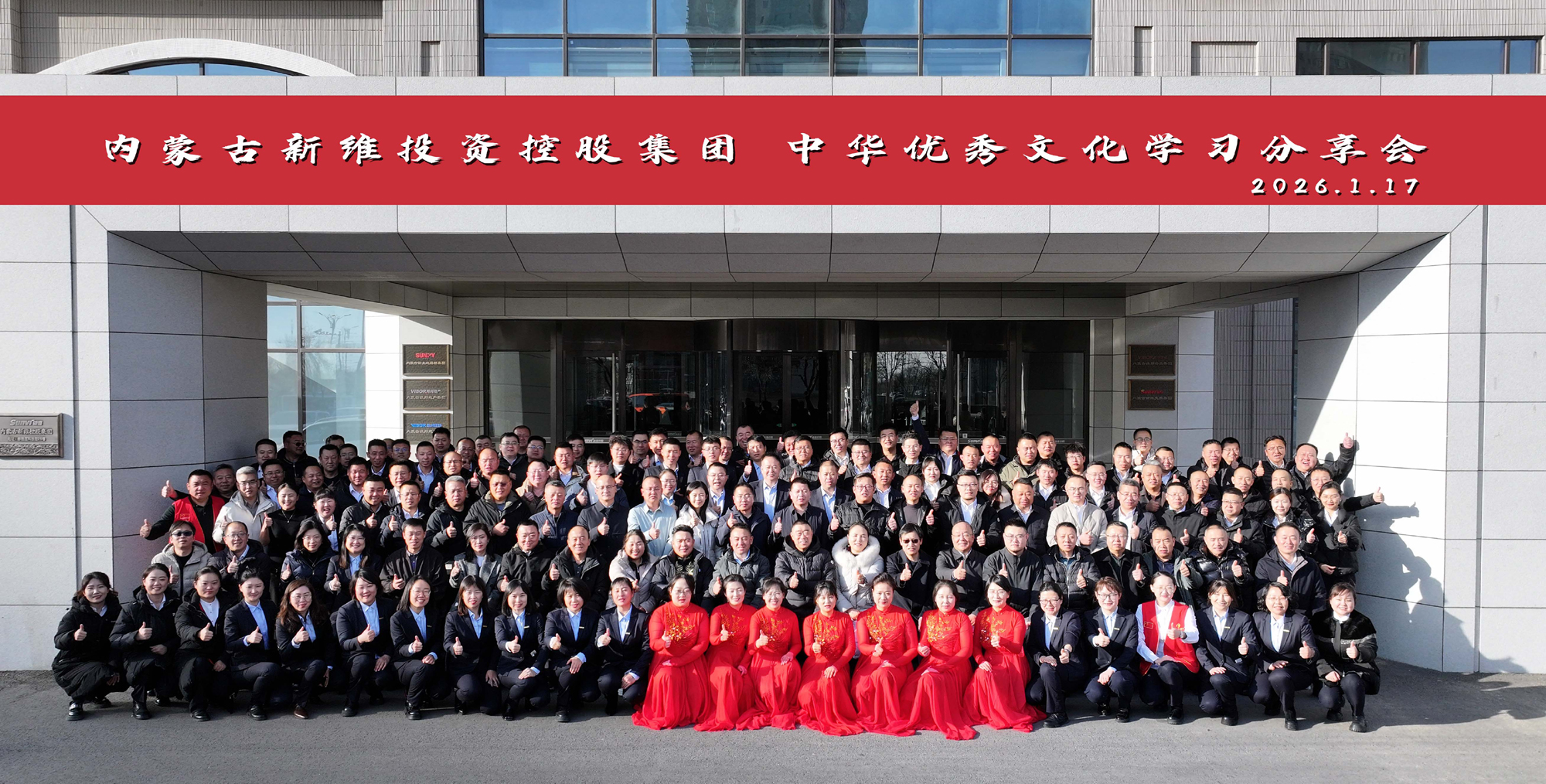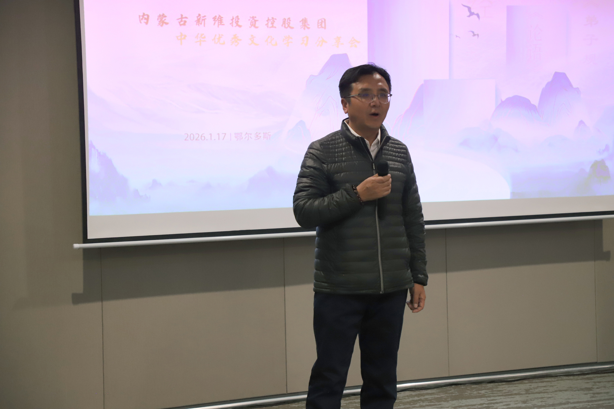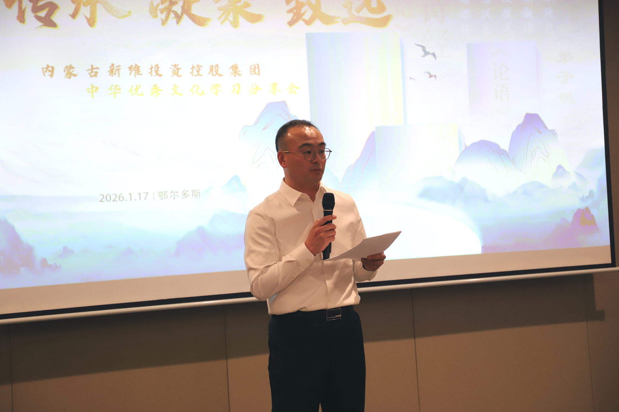2026年1月17日下午,新维控股集团举办了中华优秀文化学习分享会,主题为"传承、凝聚、致远"。本次分享会邀请到鄂尔多斯祥远传统文化理事会会务服务中心执行会长张继君学长、文旅服务中心监事李永清、理事张永光学长参会,共计145位学长参与了本次的分享会。