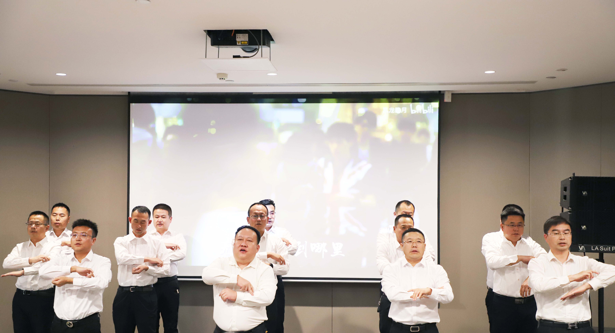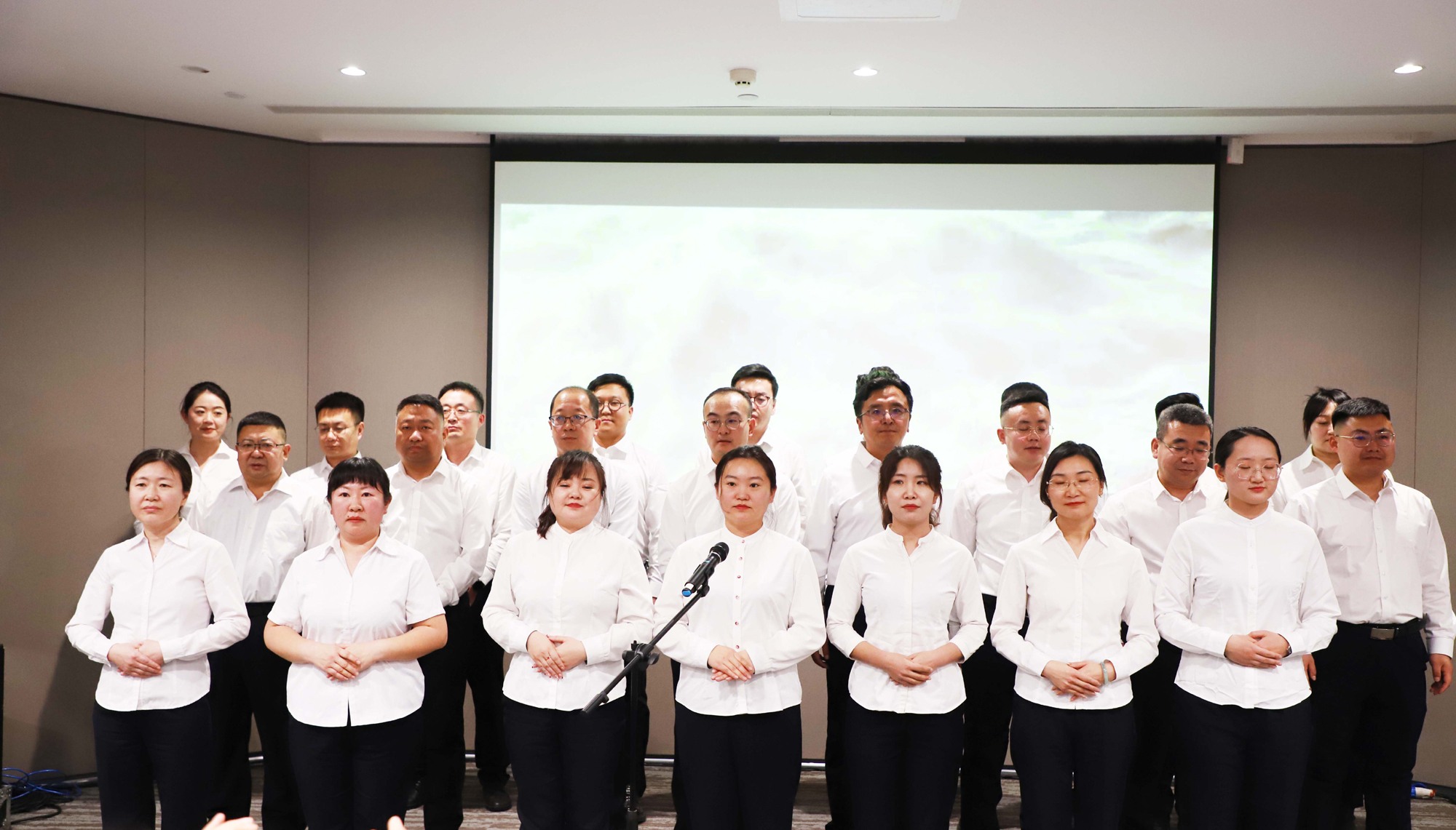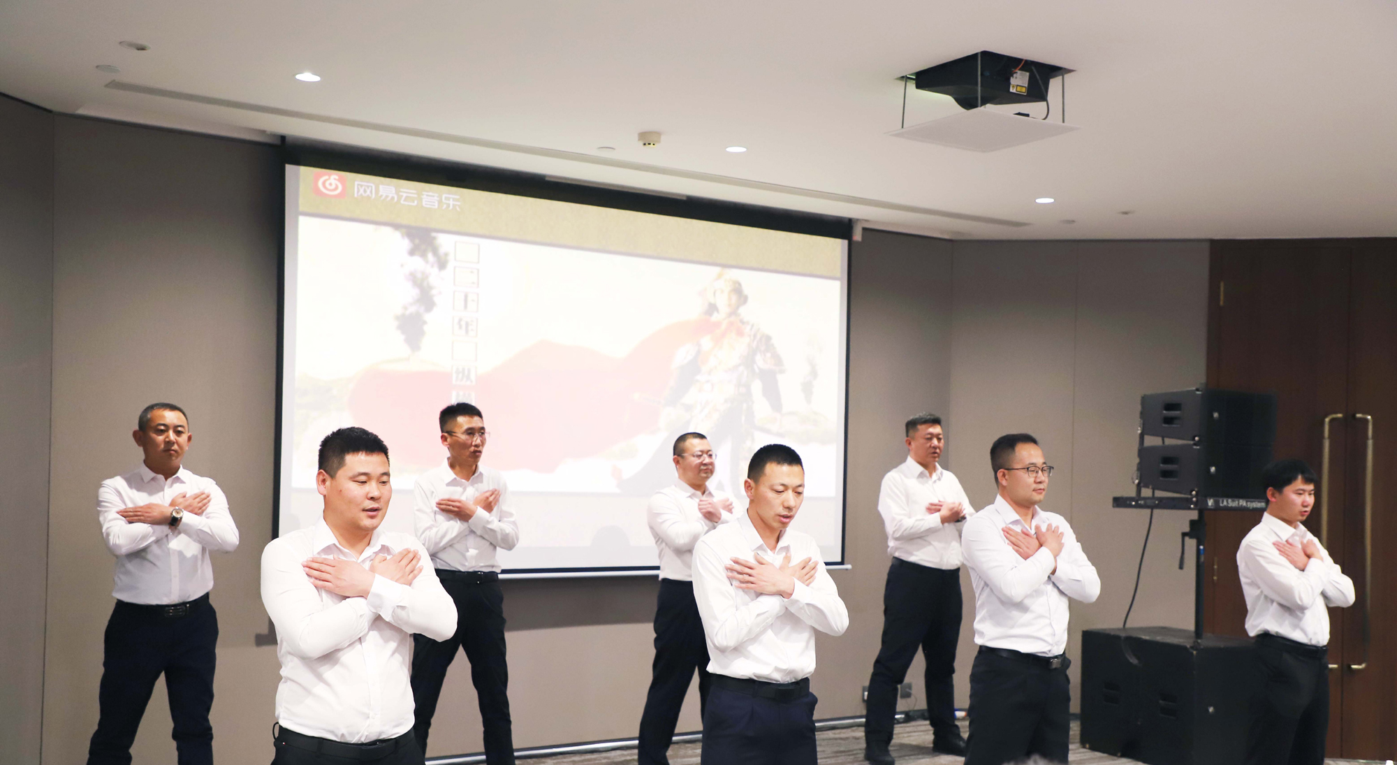 诗情画意环节精彩纷呈,为分享会增添了浓厚的文化氛围。维邦物业集团与新维文旅集团联合呈现的手语舞《感恩一切》,将“只感恩不抱怨、只恭敬不傲慢”的理念融入每一个动作,唤起全场共鸣;新大地集团带来的《我和我的祖国》表演,字里行间满含对祖国的赤诚与热爱,彰显血脉相连的家国情怀;张永光学长倾情演唱的《等待》,情感真挚、感染力十足,引发全场共鸣;维邦建筑集团、维邦地产集团共同演绎的手语舞《精忠报国》,气势恢宏、铿锵有力,展现了新维人忠诚担当、砥砺奋进的精神风貌,诠释了“平凡岗位亦见忠诚”的深刻内涵。最后,新维控股集团行政部全体成员合唱《一路同心》,悠扬旋律中传递出“一路同心、一路同行”的共同信念,将现场氛围推向高潮。